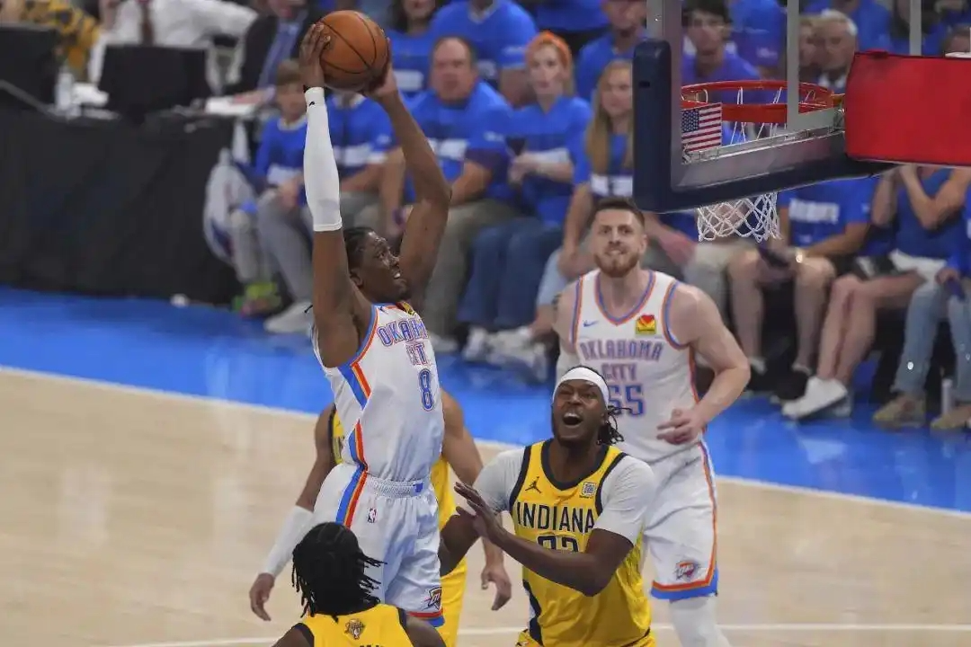 NBA总决赛天王山之战,雷霆新星杰伦-威廉姆斯上演封神表演!在雷霆120-109击败步行者的关键战役中,这位三年级球员仅用34分47秒就轰下40分6篮板4助攻,创造NBA总决赛历史上最快得到40+的惊人纪录,超越乔丹、科比、字母哥等传奇球星!
